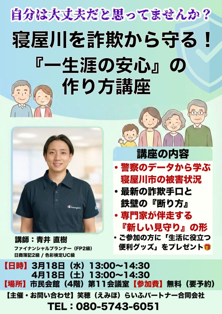 このたび、特殊詐欺の被害を防ぐためのセミナーを開催することとなりました。
